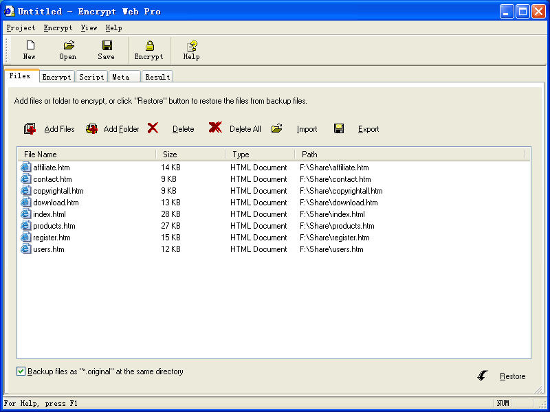 Encrypt Web Pro v1.9 英文正式版(加密HTML源碼,保護HTML代碼和網頁軟體)