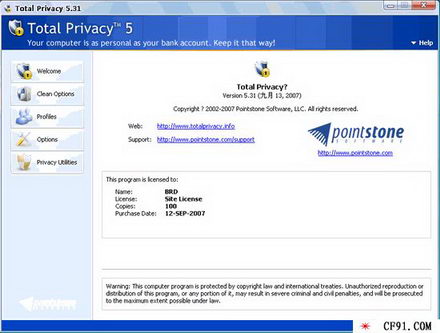 Pointstone Total Privacy v5.8.8.482 清除流覽器和系統痕跡的軟體 英文破解版